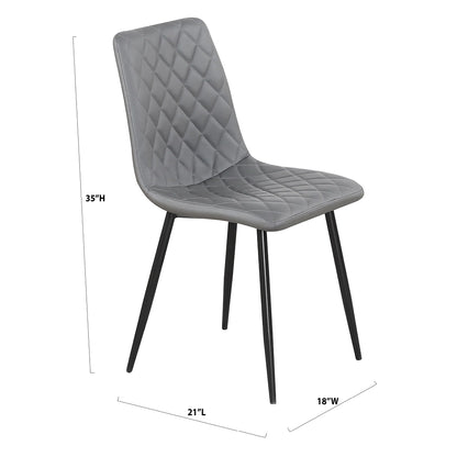 This dining chair with a contemporary design that will match most modern decors. The dining chair is designed with a durable gray cushion seat and black legs for relaxing in comfort. The dining chair offers an excellent gray cushion padded seat and black leg support that keeps your back aligned and makes you feel good. The perfect piece to add to your your living room, guest room, home or office to accommodate overnight guests.