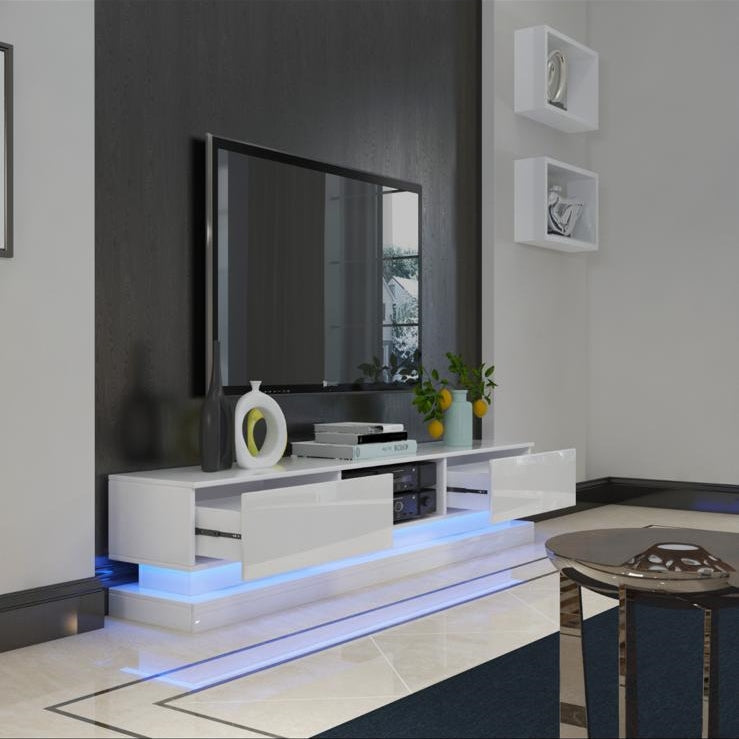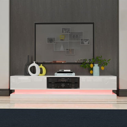Elevate the style of your living room with the Frederick 70-inch TV stand, featuring a glossy white finish. This piece of furniture combines contemporary design with functionality, creating an attractive focal point in your living space.