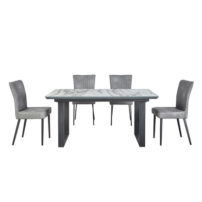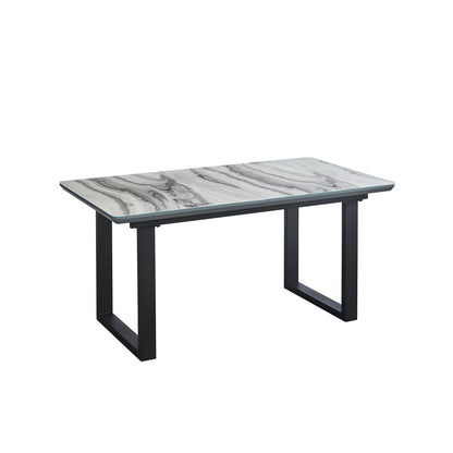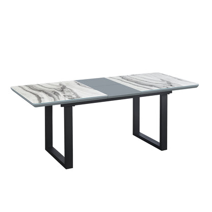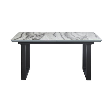 The Lilas table combines an industrial-glamor style that makes it the perfect accent for your contemporary dining room. A stunning gray and black faux marble finish swirls beneath tempered glass for a top that's both eye-catching and easy to clean, while open-frame black lacquered metal legs provide sturdy support and an attractive two-tone look. A self-storing butterfly leaf in contrasting gray adds a touch to your table while extending it to comfortably seat six people, making the Barcelona a versatile table for smaller spaces.