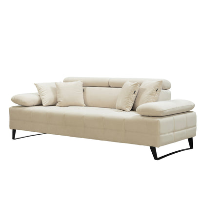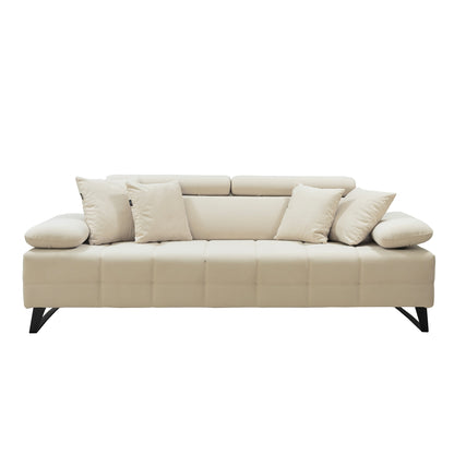 Discover our Luna 3-seater sofa in cream fabric, an invitation to comfort and elegance, equipped with adjustable headrests for a tailor-made experience.
