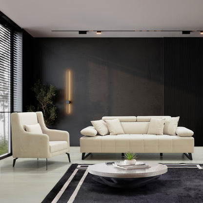 Pure Design: The Luna sofa seduces with its sleek and timeless design. Its cream fabric brings soft brightness to your space, creating a welcoming and warm atmosphere.