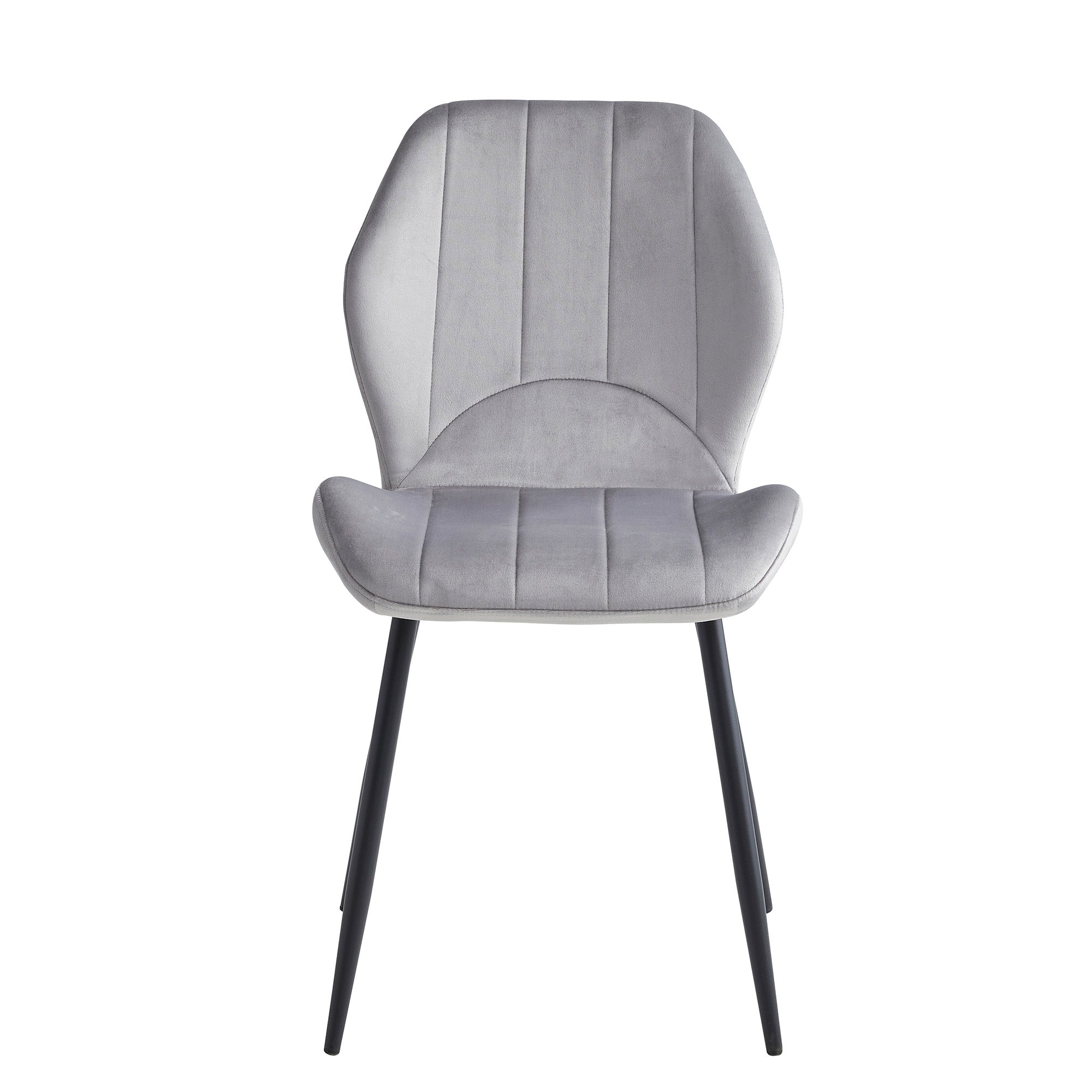 Cette chaise de salle à manger présente un design moderne avec une finition élégante. Revêtue de velours gris clair, elle apporte une touche de sophistication à votre espace repas. Les pieds en acier noir assurent une stabilité solide tout en ajoutant une note de modernité.