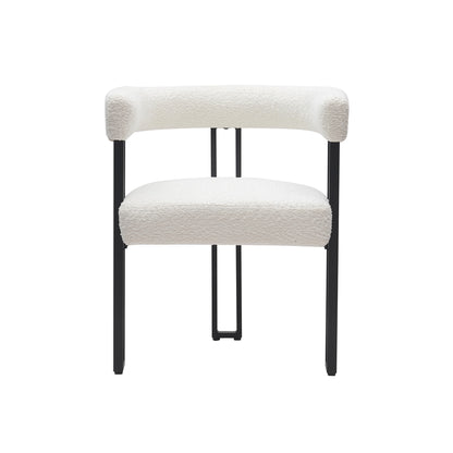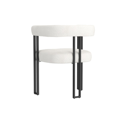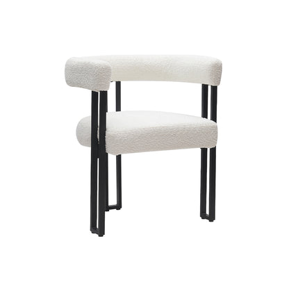 Bring a touch of refinement to your dining room with the Scarlet chair, where contemporary design meets comfort. With its soft bouclé fabric upholstery and minimalist black frame, this chair transforms any space into a magazine-worthy setting.