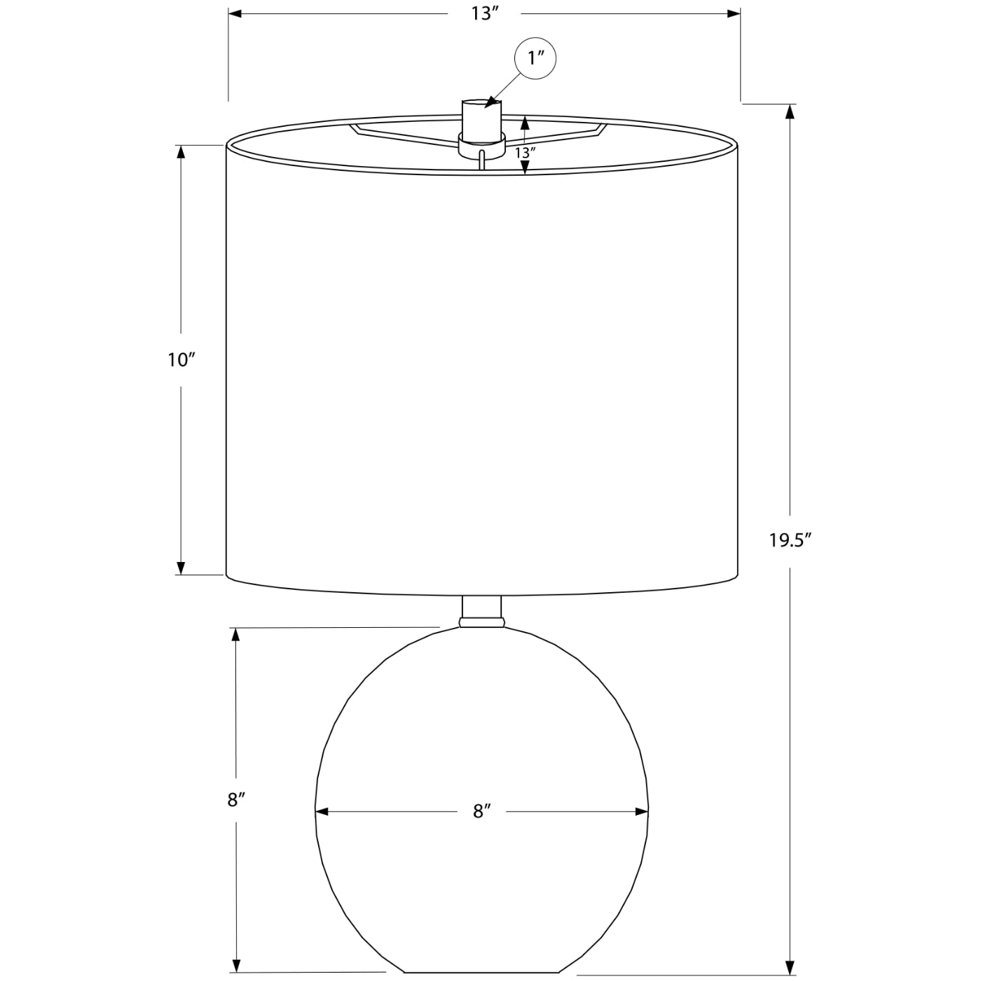 - Illuminate your office, living room or bedroom with this chic 16-inch sphere-shaped table lamp, featuring a gray concrete base with a textured finish, topped with a refined ivory linen shade and with a gold tip for a contemporary charm that attracts attention.
