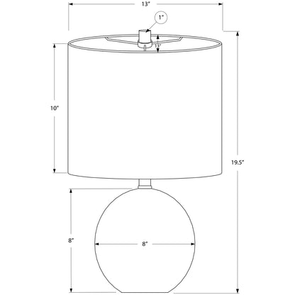 - Assembled dimensions: 13 inches L x 13 inches W x 19.5 inches H; base: 8 inches L x 8 inches W x 8 inches H; Shade: 13 inches L x 13 inches W x 10 inches H