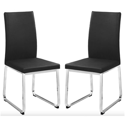 These modern kitchen chairs will have you hosting with confidence. Crafted from a smooth black faux leather material with a sturdy chrome metal base, enjoy comfortable seating that won't go unnoticed in your small home, apartment or condo. These armless chairs will tuck neatly under the table to minimize space when not in use. Don't forget to complete your kitchen or dining room collection with a matching kitchen table.
