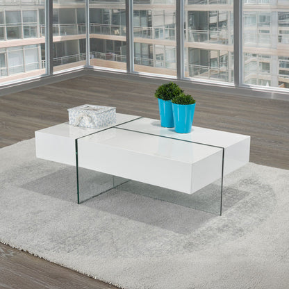 - Design contemporain : Une allure moderne avec une finition blanche lustrée et des pieds en verre trempé pour une touche de sophistication.