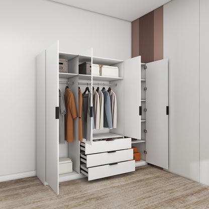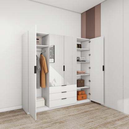 Les 3 tiroirs situés sous les 2 portes centrales offrent un espace pratique pour ranger vos petits objets. À l'intérieur, vous trouverez des penderies pour suspendre vos vêtements, des étagères pour organiser vos effets, ainsi que 3 tiroirs supplémentaires sous les 2 portes centrales. Fabriquée en panneaux de particules de 16 mm, cette armoire est solide et durable. Avec des dimensions de 19,68 pouces de profondeur, 78,74 pouces de hauteur et 78,74 pouces de largeur, cette armoire offre un espace de rangement généreux.