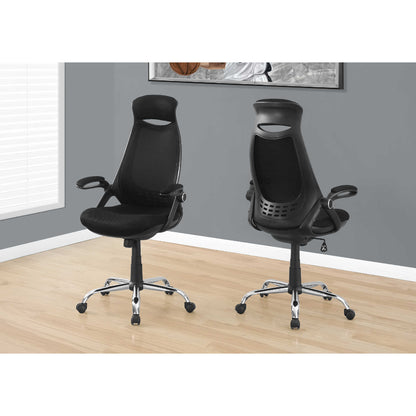 - Chaise de bureau exécutif avec un dossier haut en noir et un tissu respirant maille polyester en noir
