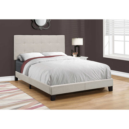 - Cadre de lit de à profil bas dans un magnifique tissu aspect lin beige; la tête de lit rembourrée est dotée d'un élégant design capitonné.