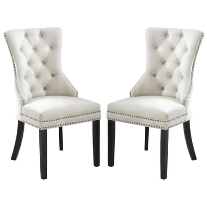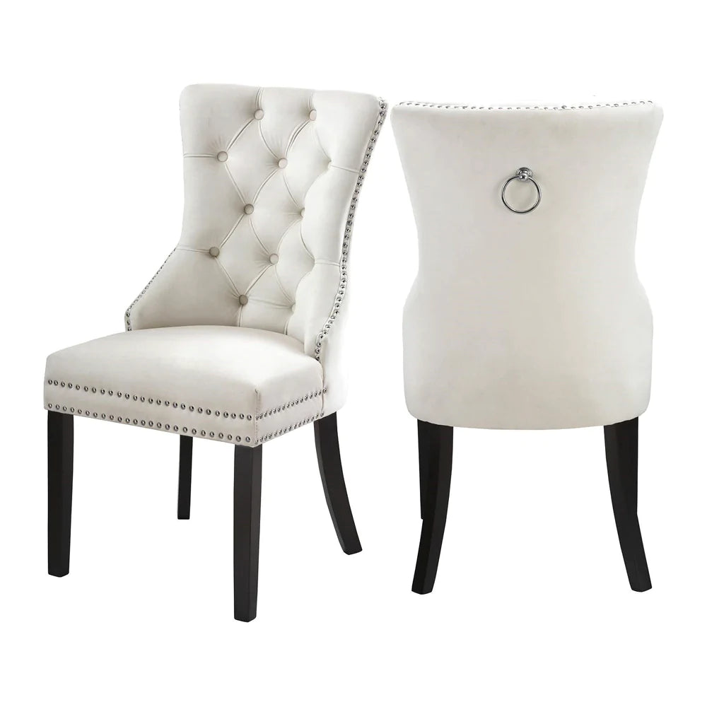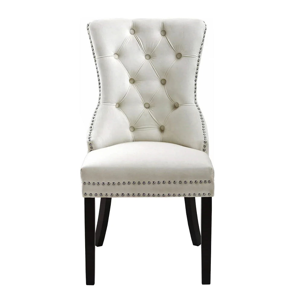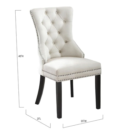 Cette chaise pour salle à manger présente un coussin épais et moelleux rembourré de mousse qui vous laissera sur votre siège toute la journée. Elle est conçue avec un rembourrage en mousse durable, des pieds en bois massif et un revêtement en velours pour se prélasser en tout confort. Elle vous permet de rester détendu et confortable lorsque vous êtes assis. Cette chaise pour salle à manger offre un excellent support et en têtes de clous qui permet à votre dos d'être bien aligné et de se sentir bien. La pièce parfaite à ajouter à votre salle à manger