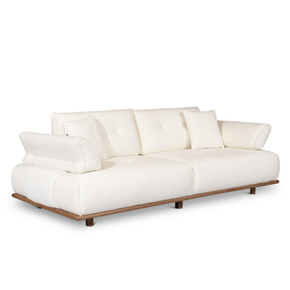 Le Sofa Loft 3 places allie sophistication et confort grâce à son design moderne et ses détails en bois stylé. Ses pieds en bois, son contour en bois à la base, ainsi que ses accents latéraux ajoutent une touche naturelle et raffinée à votre salon.