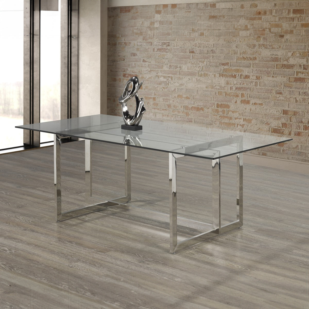 Associant un style minimaliste à une fonctionnalité de haute qualité, cette table à manger deviendra un élément essentiel de votre salle à manger ou de votre cuisine pour les années à venir. Cette table à manger chic présente un design contemporain qui complète parfaitement une large gamme de décors et de styles personnels. Parfaite pour les grandes familles, cette table à 6 places offre amplement d'espace pour que les amis et la famille se réunissent et partagent un repas. Cette table à dîner rectangulaire est équipée d'un plateau en verre trempé, reconnu pour être peu exigeant en entretien, durable et incroyablement facile à nettoyer. Complétée par un cadre en métal chromé et des pieds robustes, cette table bien conçue constituera un élégant point focal dans votre espace de repas pour les années à venir.
