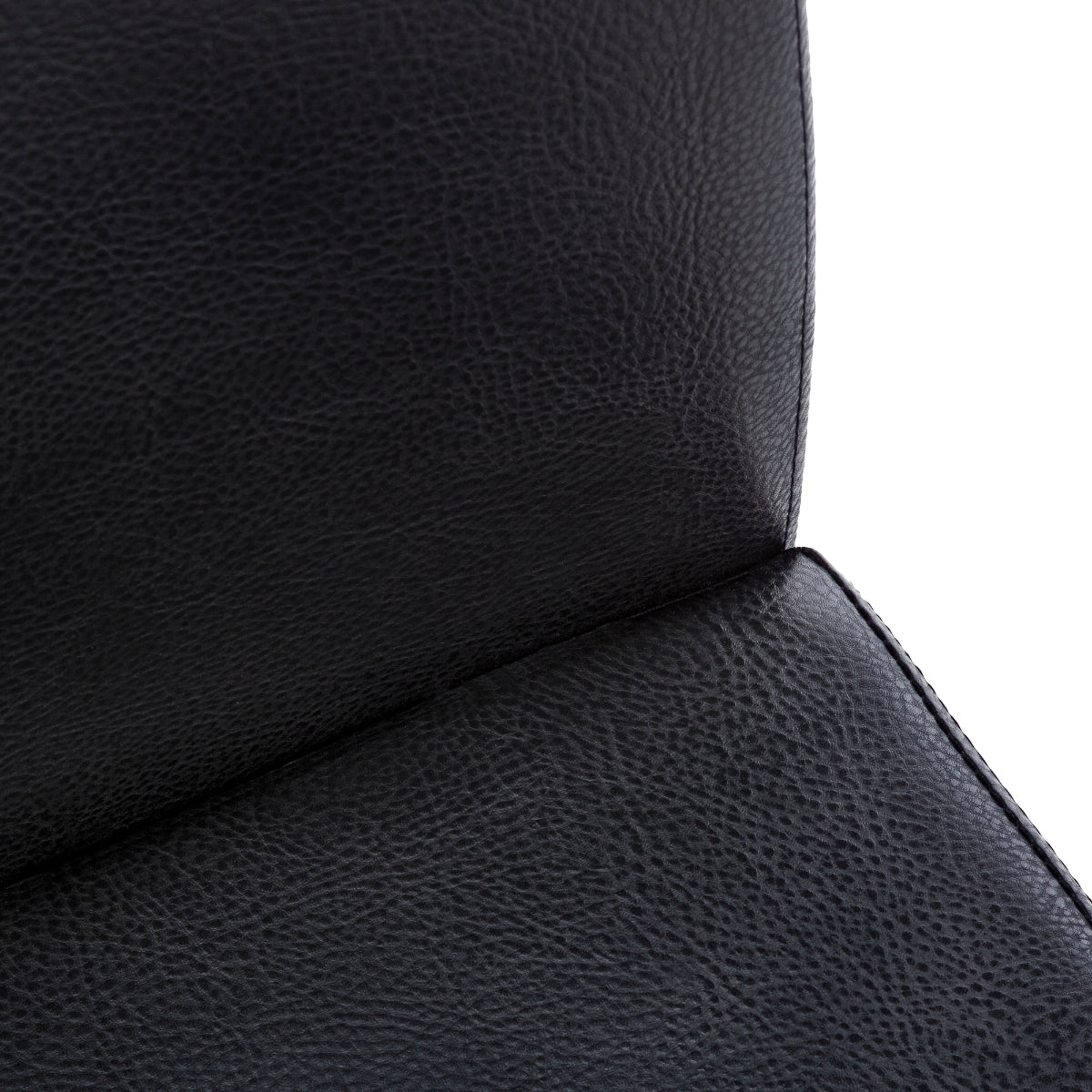- Recouvertes d'un matériau similicuir noir facile à nettoyer, ces chaises sont soutenues par une solide base en métal noir.
