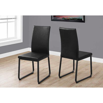 Ces chaises de cuisine modernes vous permettront d'accueillir en toute confiance. Fabriquées à partir d'un matériau lisse en similicuir fini noir avec une base robuste en métal noir, profitez du siège confortable qui ne passera pas inaperçu dans votre petite maison, appartement ou condo. Ces chaises sans accoudoirs se glisseront parfaitement sous la table pour minimiser l'espace lorsqu'elles ne sont pas utilisées. N'oubliez pas de compléter votre collection de cuisine ou de salle à manger avec une table de cuisine assortie.