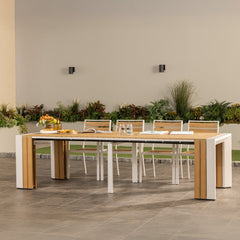 Disponible en finitions Noyer Foncé et Chêne Clair, cette chaise complète parfaitement la table d'extérieur Transformer.
