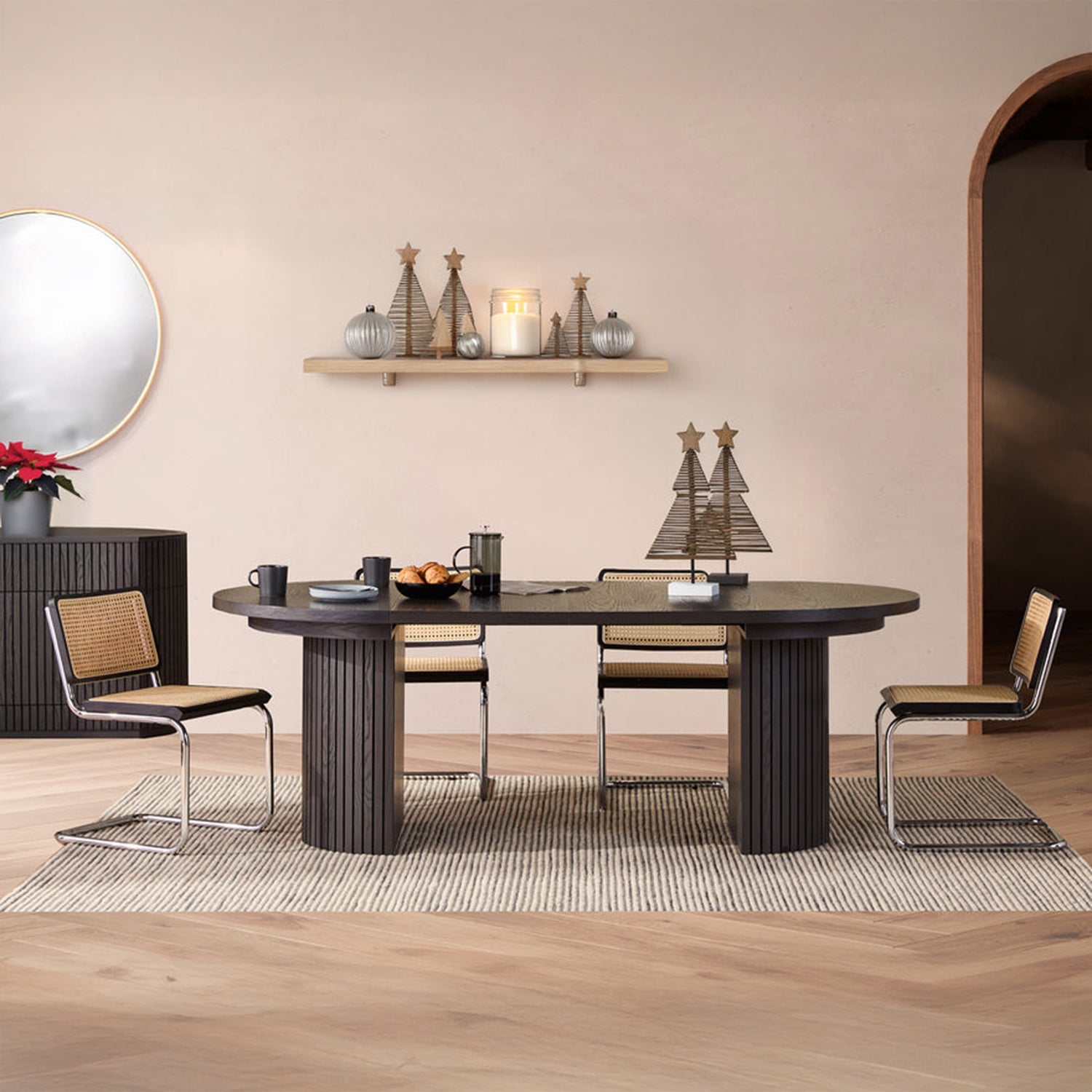 Un design à la fois élégant et fonctionnel, cette table extensible s’adapte à toutes les occasions. Transformez-la facilement d’une table ronde en une table ovale pour accueillir jusqu’à 10 personnes. Les trois rallonges sont incluses, vous permettant d'ajuster la taille selon vos besoins.